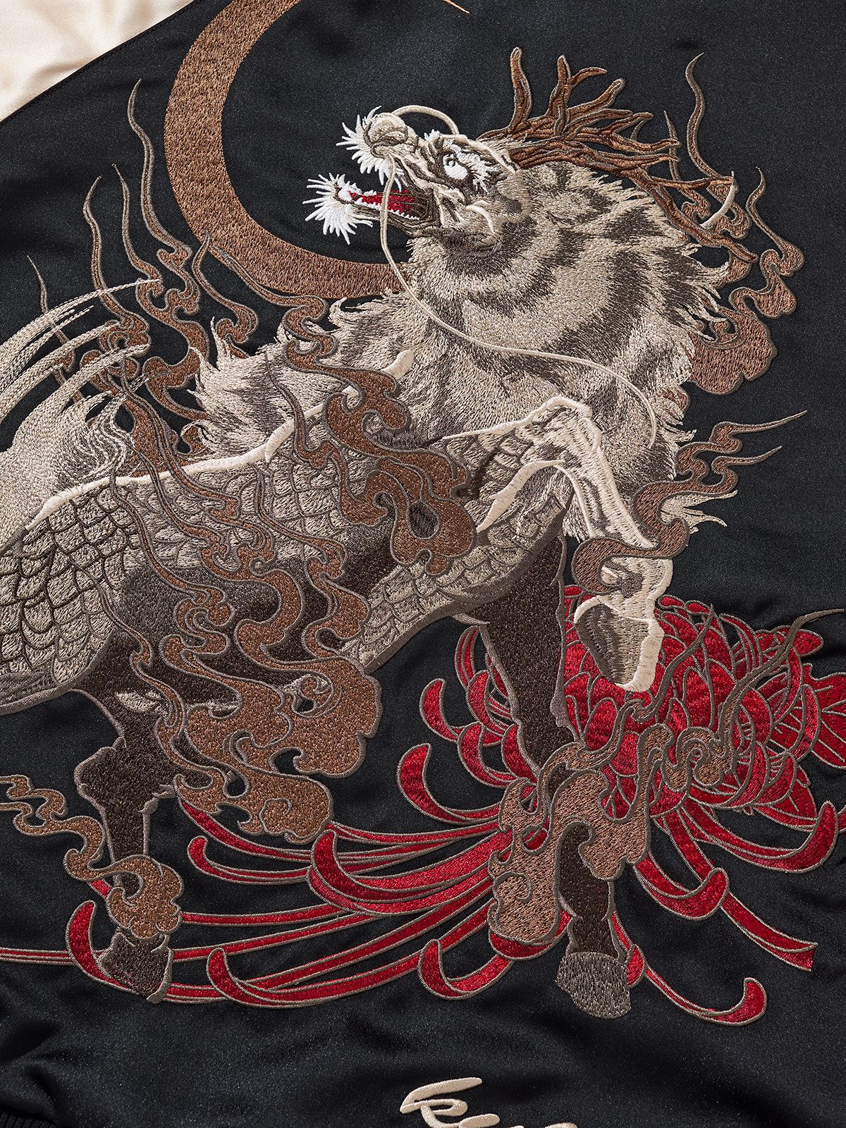 Robuste, bestickte Herren-Baseballjacke mit Qilin-Motiv (Fabelwesen).