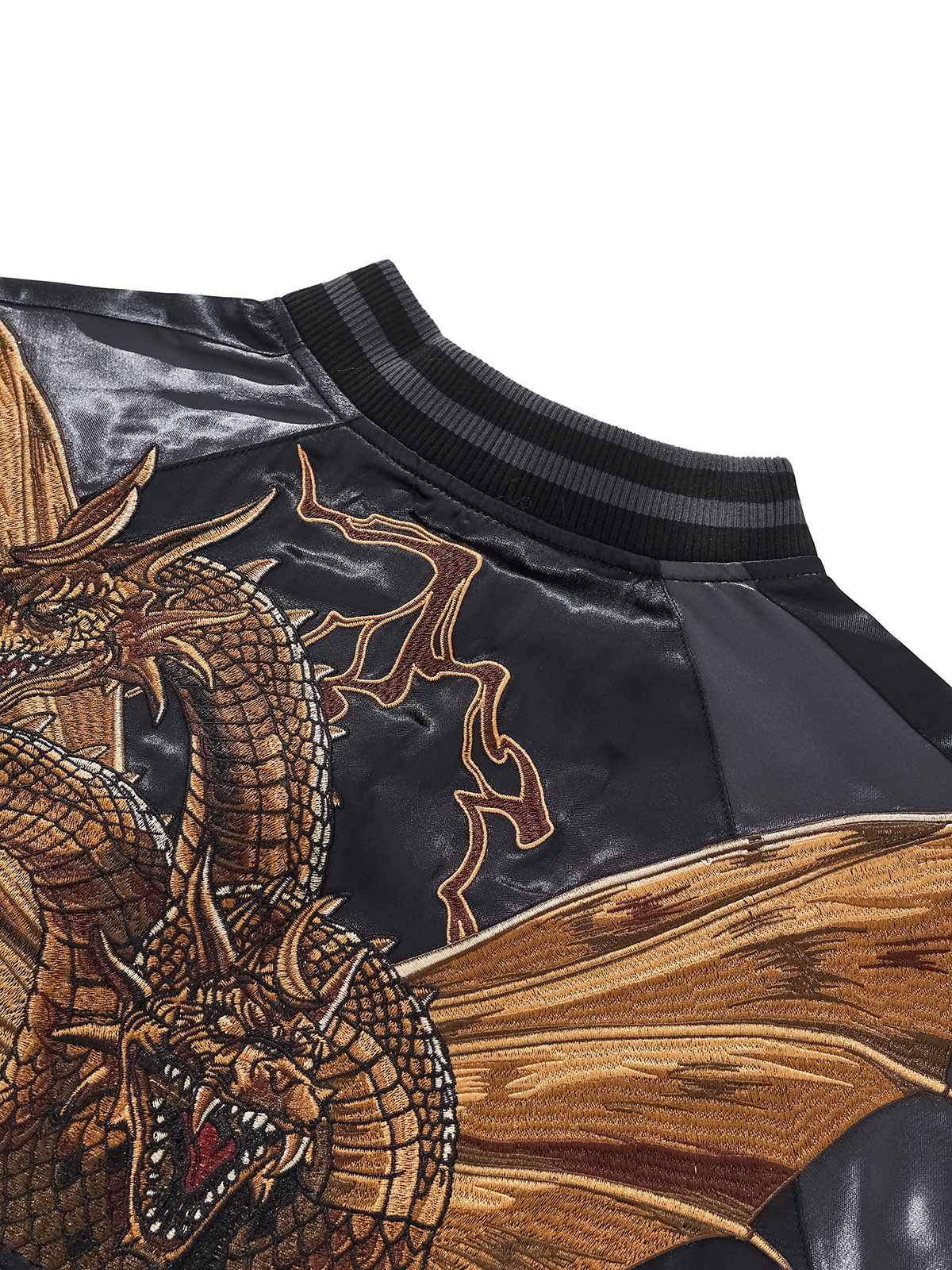 Herrenjacke im chinesischen Stil aus Polyester, locker geschnitten, bestickt